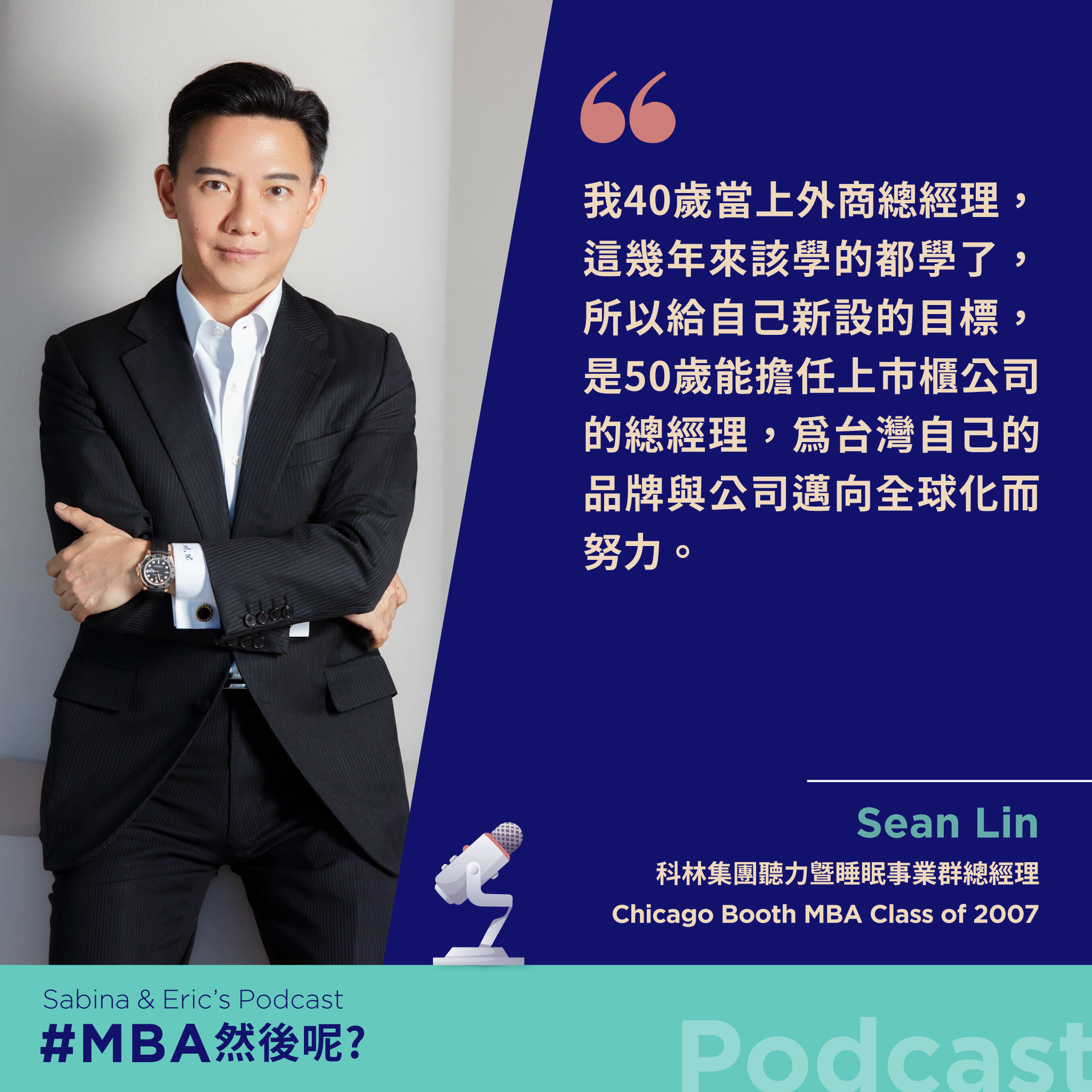 「MBA,然後呢?」不僅是我們的 podcast 節目名稱,更是平常與 MBA 校友交流時,常常聊到的話題。很多人走進外商,視它為 MBA 職涯的終點,但對 Sean 而言,他在 40 歲就成為全台最年輕的醫療外商總經理,累積了多年經歷後,他開始思考:職涯下半場,能不能有更深的影響力?